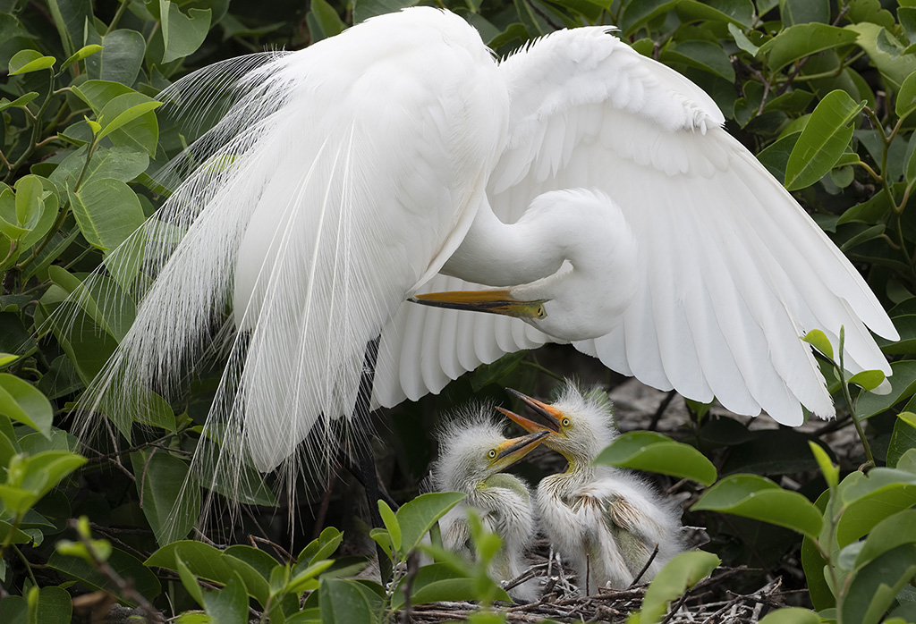This image was created at Wakodahatchee Wetlands in Florida, this past March. There is a boardwalk of about 2 miles where you can wander and observe the birds. This was close to the mangrove and fairly open. Only by chance did I notice the 2 little chicks as the parent moved position. I spent most of the day observing them and photographing and I was LUCKY to be at the right place at the right time.” ~Carlotta