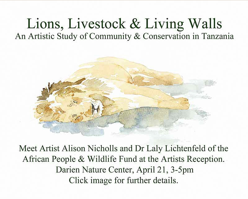 Dr Laly Lichtenfeld, founder and director of APW, will attend the opening. The exhibition will run from April 12 – 26, 2013. 20% of exhibition sales will benefit APW and 10% will benefit Darien Nature Center.