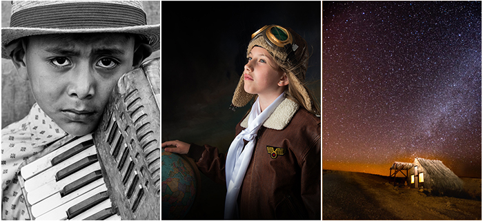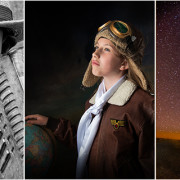 “To Fly” is a portrait of my 8 year old granddaughter Leah who requested a photo of herself in her Amelia Earhart Halloween costume. I used a hand painted background aand a 6 foot parabolic light modifier pointed 90 degrees away from the subject so that just the edges would light her, a technique called “feathering the light”. A fan was added to get some lift on her hair. A vignette was added with Photoshop. ~Linda B.